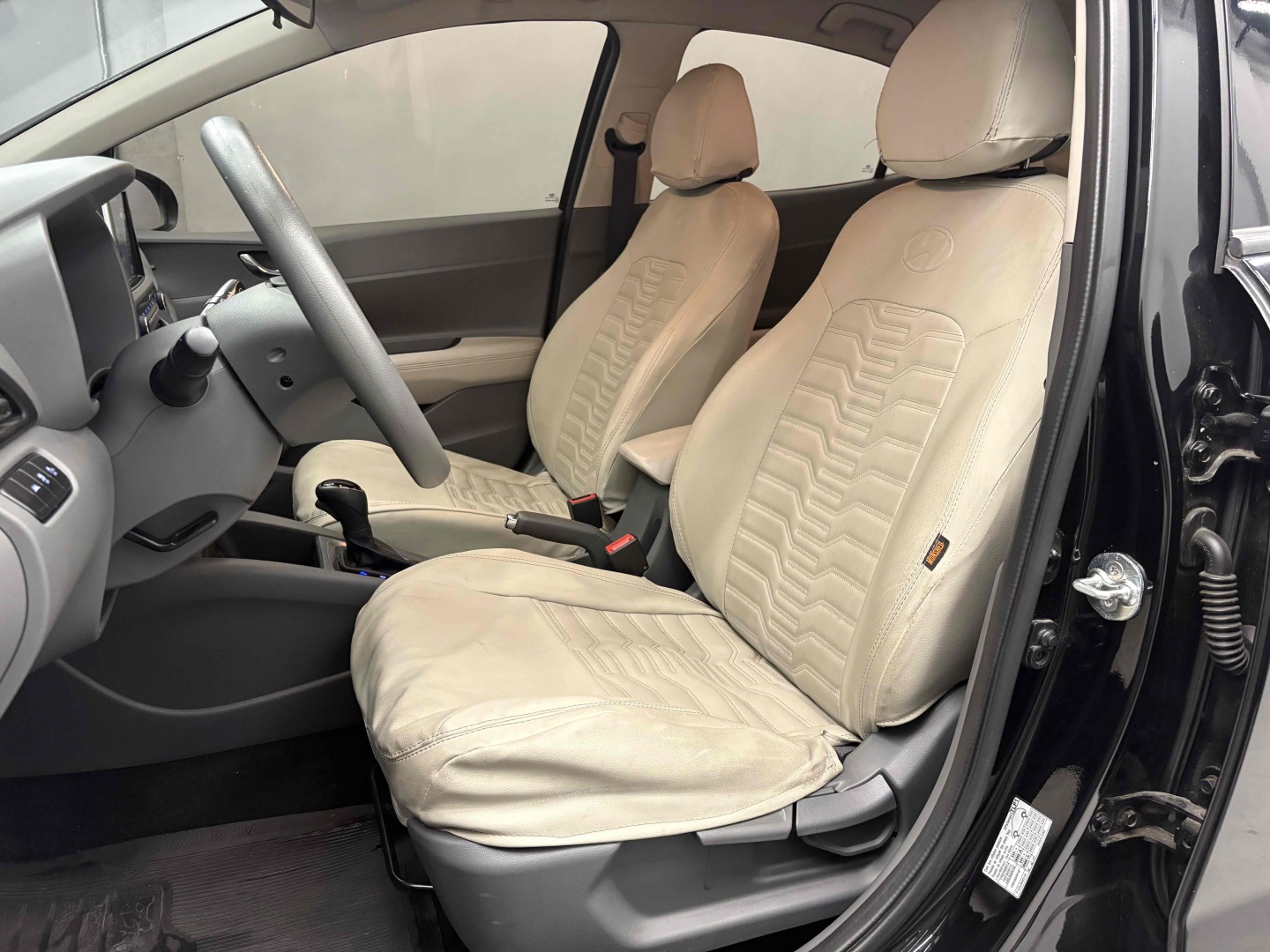 - Bancos com capa de couro bege